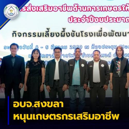 อบจ.สงขลา จัดโครงการส่งเสริมอาชีพด้านการเกษตรให้แก่เกษตรกรในจังหวัดสงขลา ประจำปีงบประมาณ พ.ศ. 2569