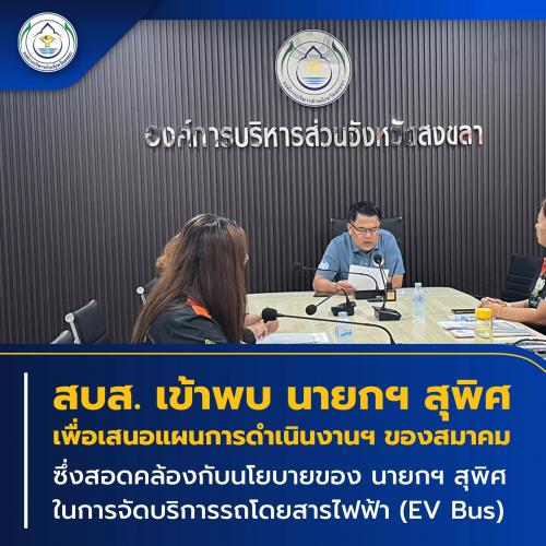 สบส. เข้าพบ นายกฯ สุพิศ เพื่อเสนอแผนการดำเนินงานฯ ของสมาคม ซึ่งสอดคล้องกับนโยบายของ นายกฯ สุพิศ ในการจัดบริการรถโดยสารไฟฟ้า (EV Bus)