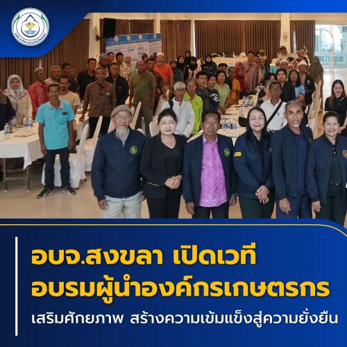 อบจ.สงขลา เปิดเวทีอบรมผู้นำองค์กรเกษตรกร เสริมศักยภาพ สร้างความเข้มแข็งสู่ความยั่งยืน