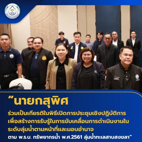 นายกสุพิศ ร่วมเป็นเกียรติในพิธีเปิดการประชุมเชิงปฏิบัติการเพื่อสร้างการรับรู้ในการขับเคลื่อนการดำเนินงานในระดับลุ่มน้ำตามหน้าที่และมอบอำนาจ ตาม พ.ร.บ.ทรัพยากรน้ำ พ.ศ.2561 ลุ่มน้ำทะเลสาบสงขลา