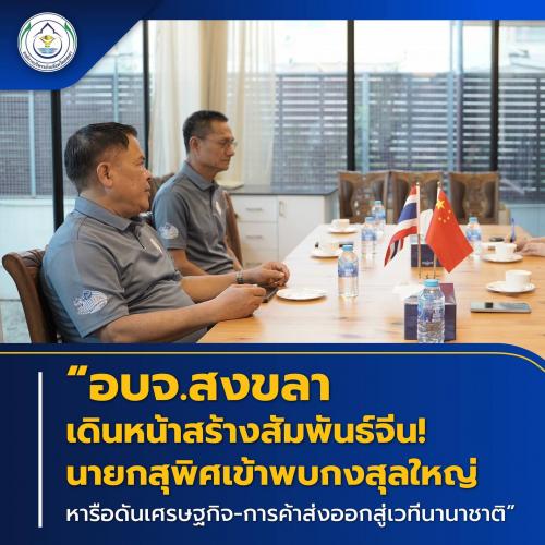 “นายกสุพิศ” นำทีม อบจ.สงขลา เข้าพบกงสุลใหญ่จีน หารือความร่วมมือด้านการค้า-การส่งออก ดันสินค้าและศักยภาพสงขลาสู่ตลาดนานาชาติ