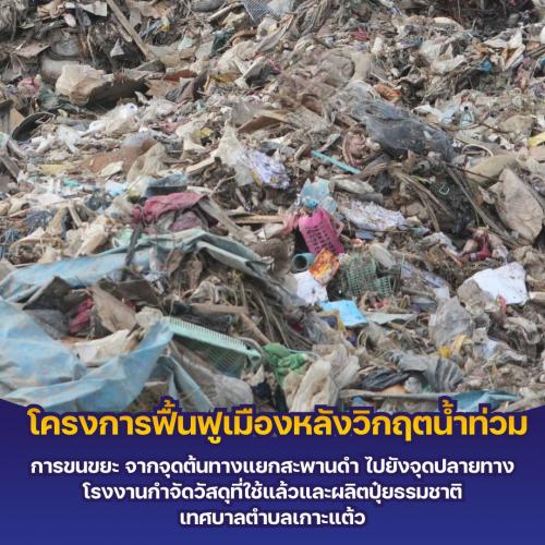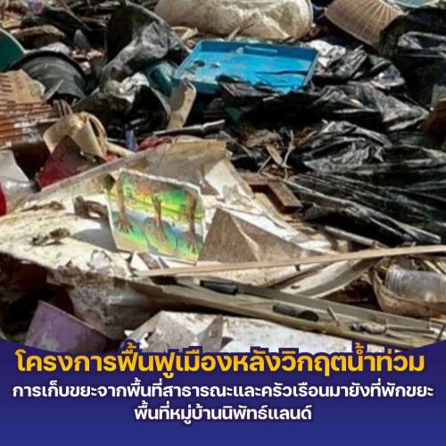 โครงการฟื้นฟูเมืองหลังวิกฤติน้ำท่วม การเก็บขยะจากพื้นที่สาธารณะและครัวเรือนมายังที่พักขยะ พื้นที่หมู่บ้านนิพัทธ์แลนด์