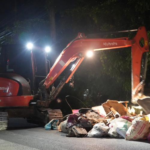 อบจ.สงขลา ลงพื้นที่ให้กำลังใจทีมภาคสนาม ติดตามภารกิจฟื้นฟูเมืองหาดใหญ่ พื้นที่ถนนจันทร์วิโรจน์