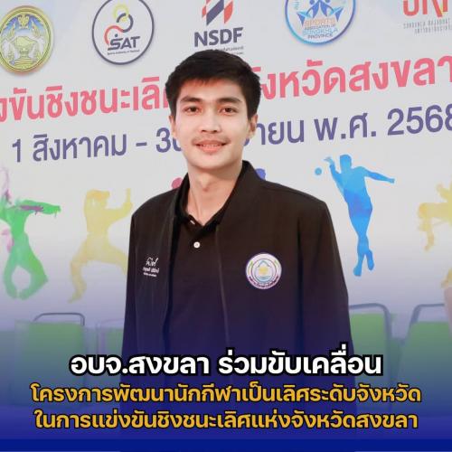 อบจ.สงขลา ร่วมขับเคลื่อนโครงการพัฒนานักกีฬาเป็นเลิศระดับจังหวัด ในการแข่งขันชิงชนะเลิศแห่งจังหวัดสงขลา ประจำปีงบประมาณ พ.ศ.2568