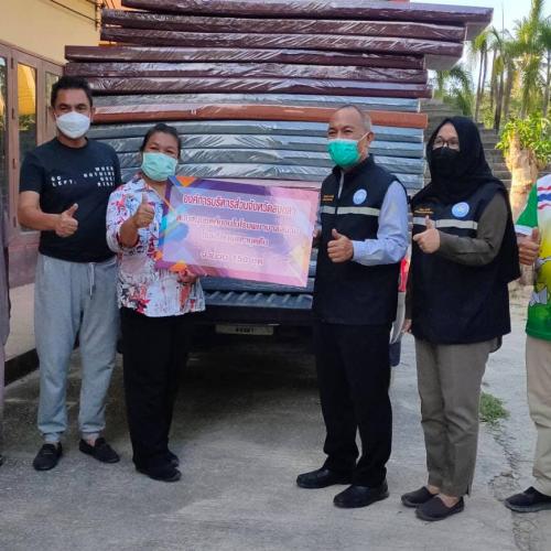รองนายกอบจ.สงขลา พร้อมด้วยเลขาฯ ลงพื้นที่มอบที่นอนโรงพยาบาลสนาม ณ โรงเรียนบุสตารุสดีน
