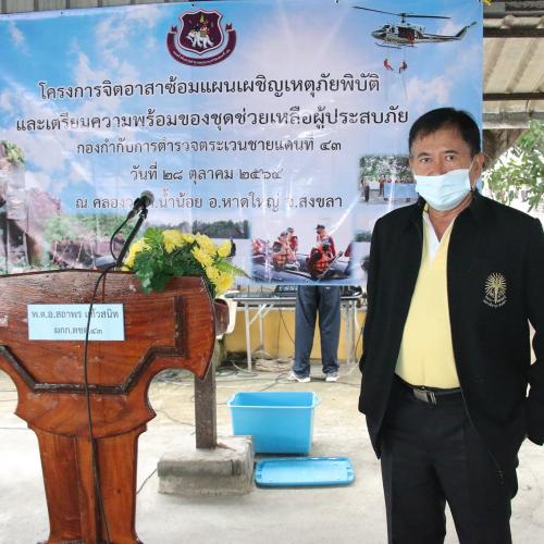 นายกอบจ.สงขลา มอบหมายให้ ที่ปรึกษาฯ ร่วมเป็นเกียรติโครงการจิตอาสาซ้อมแผนเผชิญเหตุภัยพิบัติ ซึ่งจัดโดย กองกำกับการตำรวจตระเวนชายแดนที่ 43