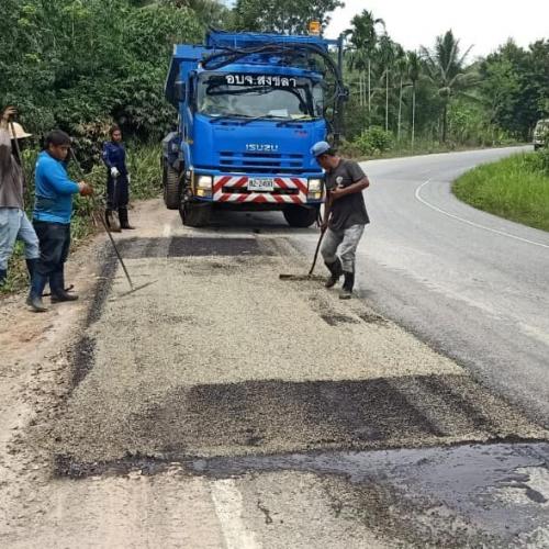 นายกอบจ.สงขลา สั่งการให้เจ้าหน้าที่สำนักการช่าง นำเครื่องจักรกลดำเนินการซ่อมแซมถนนแอสฟัลติกคอนกรีต สาย บ้านวังโต้ ต.นาทวี - บ้านสะพานไม้แก่น ต.สะพานไม้แก่น อ.จะนะ