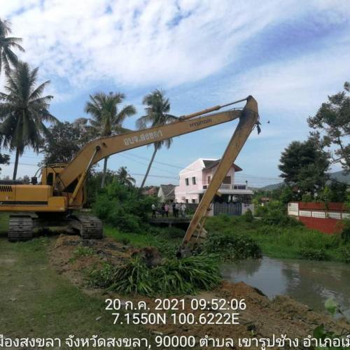 นายกอบจ.สงขลา สั่งการให้เจ้าหน้าที่สำนักการช่าง นำรถแบคโฮเร่งกำจัดวัชพืชที่อยู่ในลำคลอง และขุดลอกดินโคลนขยายร่องน้ำ ณ คลองสำโรง ตำบลเขารูปช้าง อำเภอเมืองสงขลา