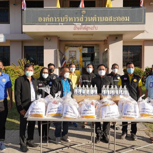 นายกอบจ.สงขลา พร้อมด้วยเลขาฯ และที่ปรึกษาฯ ร่วมมอบถุงยังชีพให้แก่ประชาชนที่ได้รับผลกระทบจากโรคโควิด 19 ในเขตพื้นตำบลสะกอม อำเภอเทพา