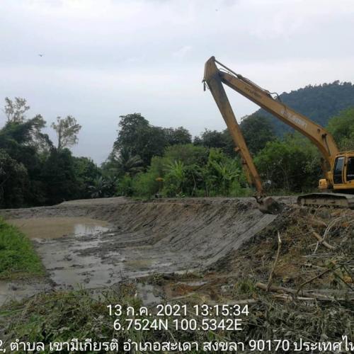 นายกอบจ.สงขลา สั่งการให้เจ้าหน้าที่สำนักการช่าง นำรถแบคโฮดำเนินการกำจัดวัชพืชและขุดลอกดินโคลนสระน้ำ หมู่ 4 ตำบลเขามีเกียรติ อำเภอสะเดา