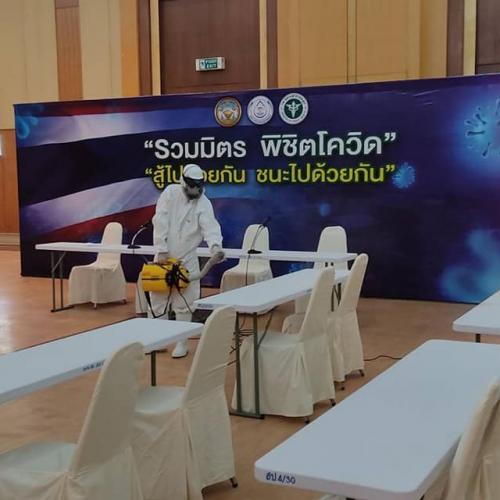 นายกอบจ.สงขลา สั่งการให้เจ้าหน้าที่ชุดปฏิบัติการฉีดพ่นฆ่าเชื้อ เร่งดำเนินการทำความสะอาดในพื้นที่อาคารศรีเกียรติพัฒน์และบริเวณโดยรอบอาคารศรีเกียรติพัฒน์