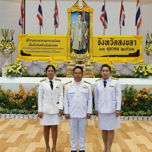 ปลัดอบจ. ปฏิบัติหน้าที่ นายก อบจ.สงขลา พร้อมตัวแทนส่วนราชการ เข้าร่วมพิธีวางพวงมาลา กิจกรรมน้อมรำลึกเนื่องในวันคล้ายวันสวรรคตพระบาทสมเด็จพระจุลจอมเกล้าเจ้าอยู่หัว