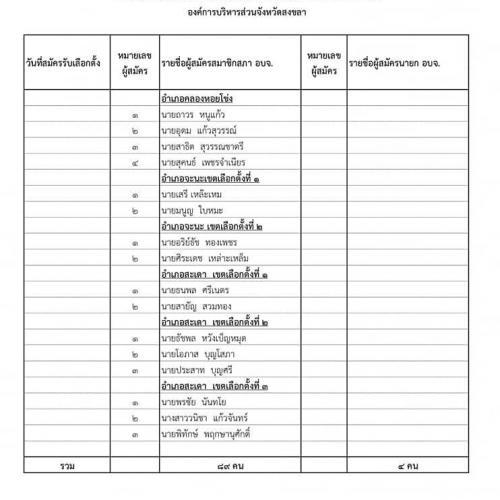 รายงานผลการสมัครรับเลือกตั้งนายกองค์การบริหารส่วนจังหวัดสงขลา และสมาชิกสภาองค์การบริหารส่วนจังหวัดสงขลา วันที่ 5 พ.ย.63
