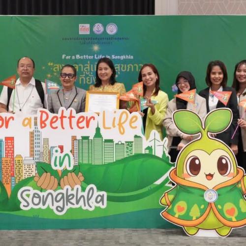 อบจ.สงขลา มอบเกียรติบัตรประกวดคลิปวิดีโอ TikTok ในการประชุมแลกเปลี่ยนเรียนรู้ผลลัพธ์และบทเรียนการดำเนินงานของโครงการระดับพื้นที่