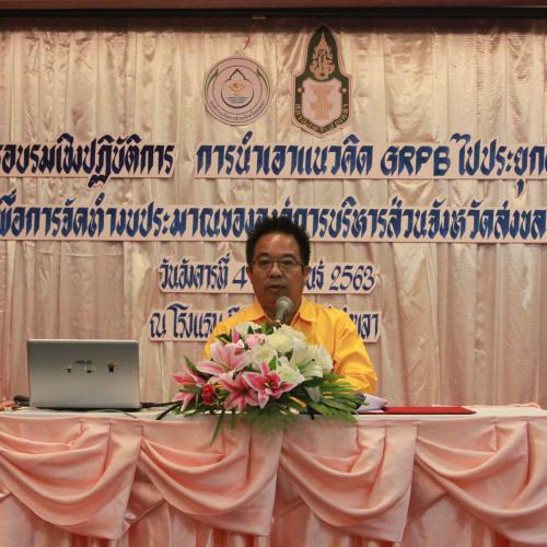 ปลัด อบจ. ปฏิบัติหน้าที่ นายก อบจ.สงขลา กล่าวต้อนรับผู้มีเกียรติ เข้าอบรมสัมมนาเชิงวิชาการ เรื่อง การจัดทำงบประมาณที่คำนึงถึงความเสมอภาคทางเพศ (Gender Responsive Participatory Budgeting : GRPB)