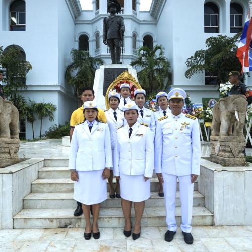 หัวหน้าฝ่ายการประชุม ช่วยปฏิบัติราชการในตำแหน่งหัวหน้าฝ่ายบริหารงานทั่วไป องค์การบริหารส่วนจังหวัดสงขลา นำคณะข้าราชการ และพนักงาน องค์การบริหารส่วนจังหวัดสงขลา ร่วมพิธีวางพวงมาลาและถวายราชสดุดี