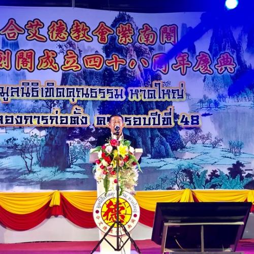 รองนายก อบจ.สงขลา กล่าวแสดงความยินดี แด่มูลนิธิเทิดคุณธรรม หาดใหญ่ ฉลองการก่อตั้งมูลนิธิ ครบรอบ 48 ปี