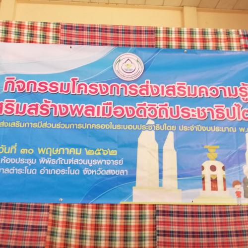โครงการส่งเสริมความรู้ เสริมสร้างพลเมืองดีวิถีประชาธิปไตย ประจำปีงบประมาณ พ.ศ.2562 ศูนย์ส่งเสริมพัฒนาประชาธิปไตยและการเลือกตั้งตำบลตะเครียะ อำเภอระโนด จังหวัดสงขลา