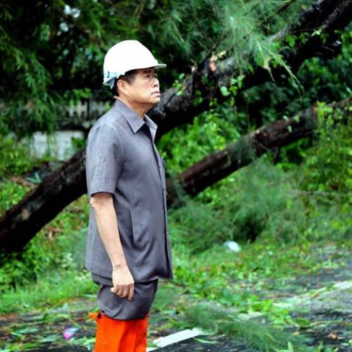 นายก อบจ.สงขลา ลงพื้นที่ตรวจสถานที่เกิดเหตุต้นสนขนาดใหญ่ล้มทับกีดขวางถนนสายติณสูลานนท์