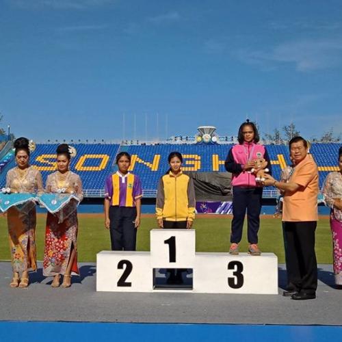 ภาพบรรยากาศการมอบเหรียญรางวัลการแข่งขันกีฬานักเรียนองค์กรปกคลองส่วนท้องถิ่นแห่งประเทศไทย รอบคัดเลือกเขตภาคใต้ ครั้งที่ 36 ซิงกอร่าเกมส์ ในประเภทกรีฑา