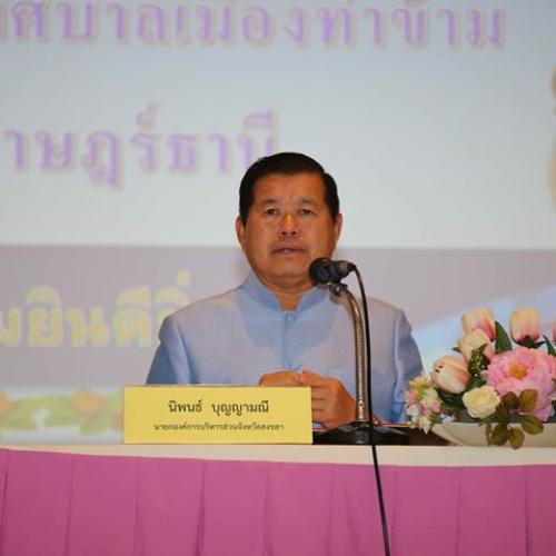นายก อบจ.สงขลา ให้การต้อนรับ นายอนุวัตร์ รจิตานนท์ นายกเทศมนตรีเทศบาลเมืองท่าข้าม จังหวัดสุราษฏร์ธานี