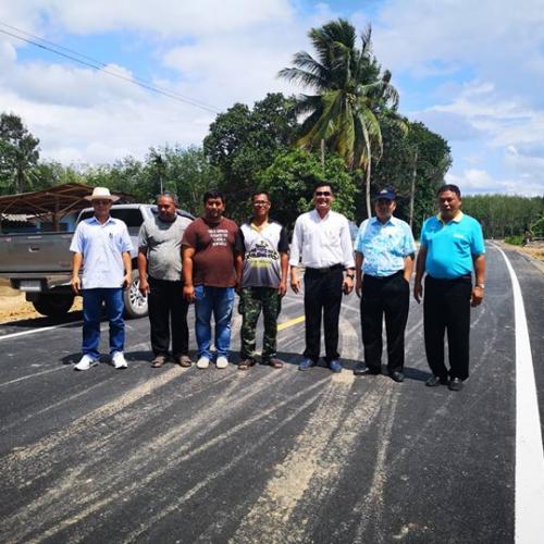 นายก อบจ.สงขลา ลงพื้นทึ่ตรวจการซ่อมปรับปรุงพื้นผิวถนนลาดยางแอสฟัลส์ติกส์ สายเลียบชายทะเลสาบ ถนนติณสูลานนท์
