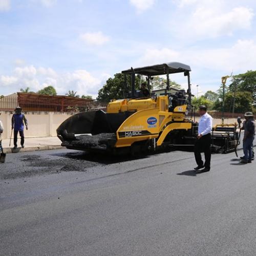 นายก อบจ.สงขลา ตรวจความคืบหน้าของการยกระดับปูพื้นผิวถนนด้วยยางแอสฟัลท์ติก บริเวณซอย 13 หน้ามหาวิทยาลัยราชภัฏสงขลา