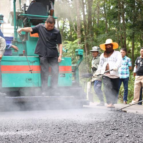 นายกอบจ.สงขลา ลงพื้นที่โครงการถนนแอสฟัลติกส์คอนกรีต ปรับปรุงคุณภาพด้วยยางพารา สายบ้านลานไทร
