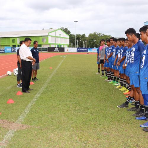 เลขานุการนายก อบจ.สงขลา ให้ให้โอวาท แก่นักฟุตบอลเยาวชน U-17 ปี ก่อนการแข่งขันฟุตบอลลีกเยาวชนแห่งชาติ