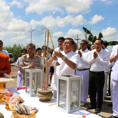 นายกอบจ.สงขลา ทำพิธีนำฤกษ์จุดธูปเทียนบูชา พร้อมทั้งวางศิลาฤกษ์อาคารจำหน่ายสินค้าของที่ระลึก 9 ตำบล