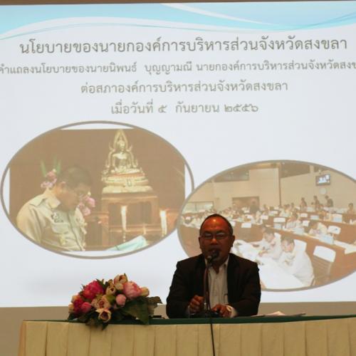 รองนายก อบจ.สงขลา บรรยายให้ความรู้แก่คณะศึกษาดูงาน หัวข้อโครงสร้างและการบริหารงานของ อบจ.สงขลา
