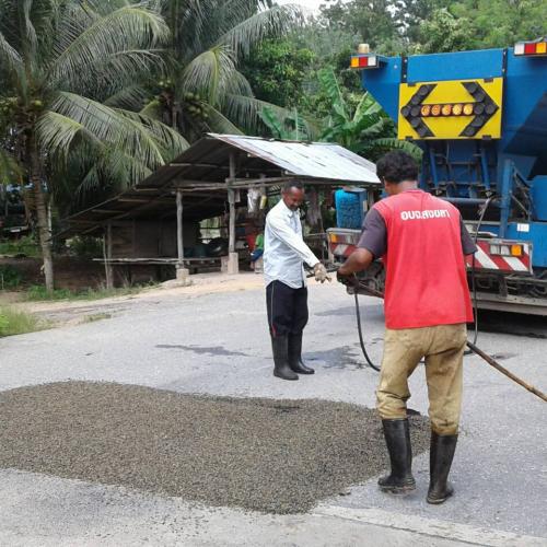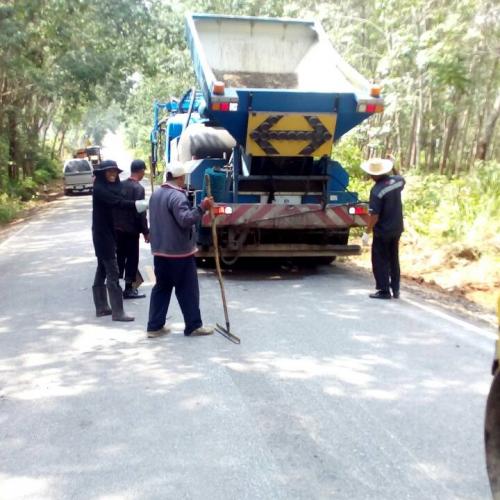กองช่าง อบจ.สงขลา ลงพื้นที่ซ่อมแซมถนนลาดยาง สายบ้านคู - บ้านท่ามะปราง อ.รัตภูมิ จ.สงขลา
