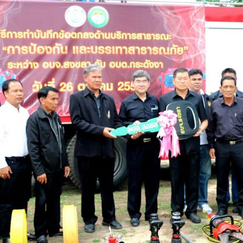 นายก อบจ.สงขลา ประธานในพิธีทำบันทึกข้อตกลง ด้านบริการสาธารณะในเรื่องการป้องกัน และบรรเทาสาธารณภัย