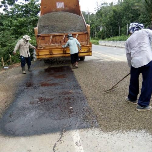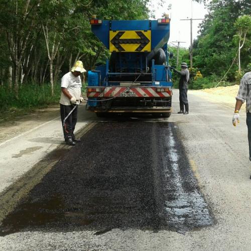 กองช่าง อบจ.สงขลา ลงพื้นที่ซ่อมแซมถนนลาดยาง สายบ้านป่ายาง - บ้านควนหัวแหวน