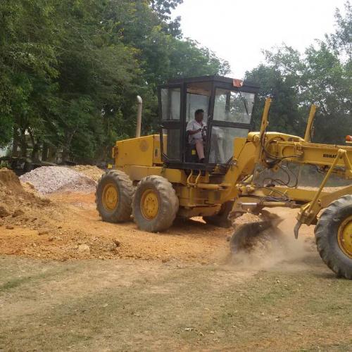กองช่างลงพื้นที่โดยนำเครื่องจักรกลชุดเกรดปรับปรุงสนามกีฬาฟุตบอลข้าง สภ.ทุ่งตำเสา