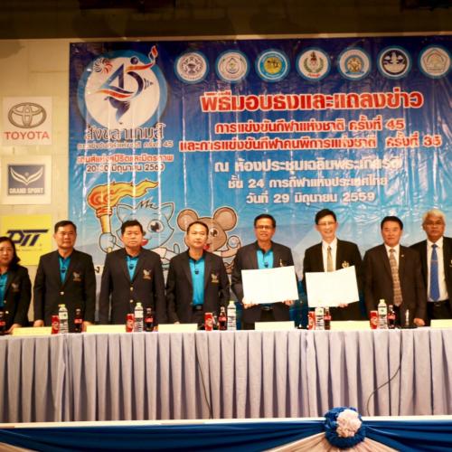 พิธีมอบธง และแถลงข่าว การแข่งขันกีฬาแห่งชาติ ครั้งที่ 45 และการแข่งขันกีฬาคนพิการแห่งชาติ ครั้งที่35