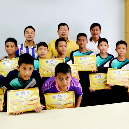 นักเรียนฟุตบอลเยาวชนที่ได้รางวัลชนะเลิศ เข้าพบนายก อบจ.สงขลา