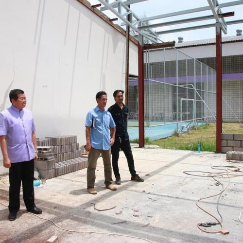กองช่าง อบจ.สงขลา ติดตามโครงการก่อสร้างสนามฟุตซอลยางสังเคราะห์ ตำบลทุ่งตำเสา