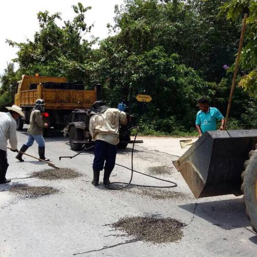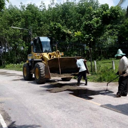 กองช่าง อบจ.สงขลา ลงพื้นที่ซ่อมถนนสายบ้านเจดีย์งาม-เกาะใหญ่ ช่วงบ้านเกาะใหญ่