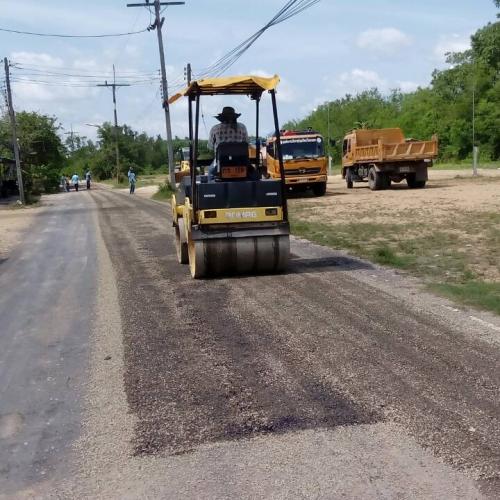 ลงพื้นที่ตรวจดูติดตามการดำเนินงานการก่อสร้าง ถนนการปรับปรุงปูพื้นถนนลาดยางแอสฟัลติกส์สายทุ่งขมิ้น