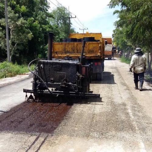 กองช่าง อบจ.สงขลา ลงพื้นที่ซ่อมถนนลาดยาง สายหนาน - หน้าโรงเรียนบ้านควนขัน