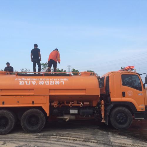อบจ.สงขลา สนับสนุนรถบรรทุกน้ำดับเพลิงอเนกประสงค์พร้อมเจ้าหน้าที่ หมู่ที่ 3 หมู่บ้านเคหะสถานครูไทย