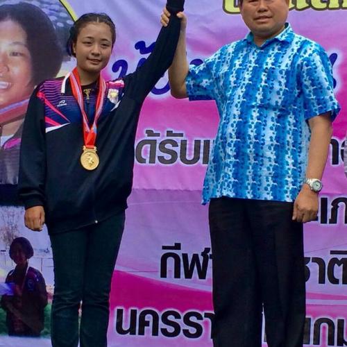 นางสาวอรพิน เพ็ชร์เล็ก (น้องแพน) ที่ได้รับเหรียญทองกีฬาแห่งชาติ นครราชสีมาเกมส์ ครั้งที่ 43