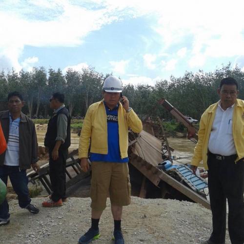 นายก อบจ.สงขลา ลงพื้นที่บ้านน้ำเค็ม เพื่อตรวจดูความคืบหน้าของการประกอบสะพานแบรี่