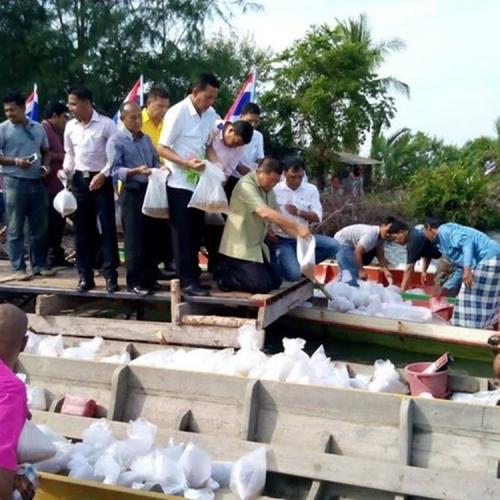 นายก อบจ.สงขลา พร้อมด้วยคณะ ร่วมปล่อยพันธุ์กุ้งกุลาดำ ณ บริเวณท่าน้ำโรงเรียนบ้านบางไหน