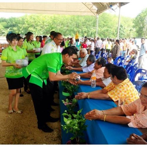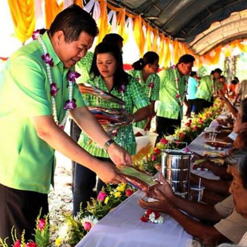 บรรยากาศพิธีทำบุญตักบาตร รดน้ำดำหัวผู้สูงอายุ ณ ศูนย์ซ่อมเครื่องจักรกล อบจ.สงขลา