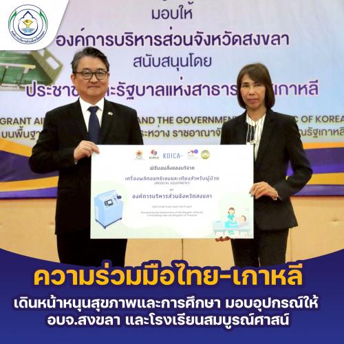 กระชับความสัมพันธ์ ไทย-เกาหลี อบจ.สงขลา รับมอบอุปกรณ์ทางการแพทย์ หนุนการส่งเสริมคุณภาพระบบการดูแลผู้ป่วยฯ ภายใต้โครงการลดช่องว่างทางการศึกษาและสุขภาพสำหรับเด็กและประชาชนกลุ่มเปราะบาง