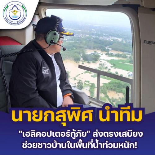 นายกสุพิศ นำ "เฮลิคอปเตอร์กู้ภัย" ลุยพื้นที่น้ำท่วม ภารกิจเร่งด่วนช่วยผู้ประสบอุทกภัย