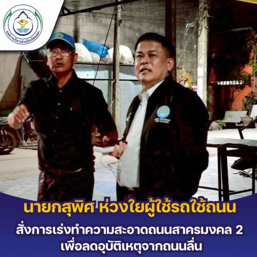 นายกฯ สุพิศ ห่วงใยผู้ใช้รถใช้ถนน สั่งการเร่งทำความสะอาดถนนสาครมงคล 2 เพื่อลดอุบัติเหตุจากถนนลื่น