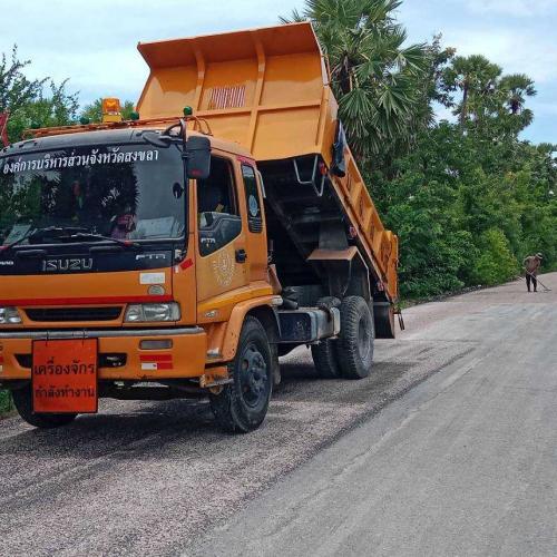 สำนักช่าง อบจ.สงขลา ดำเนินการซ่อมแซมผิวถนนที่ชำรุดเป็นหลุมบ่อ ในพื้นที่ สายวัดพะโค๊ะ บ้านห้วยลาด ตำบลคลองลี อำเภอสทิงพระ จังหวัดสงขลา